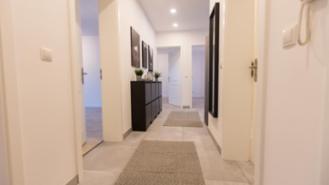 Die ca. 100 qm große Wohnung befindet sich im 6. Obergeschoss eines Mehrfamilienhauses – direkt an der Haltestelle Harburg Rathaus 🚆.